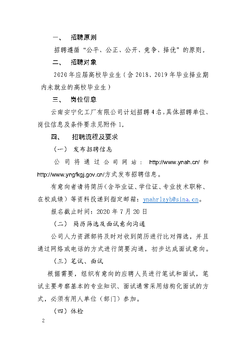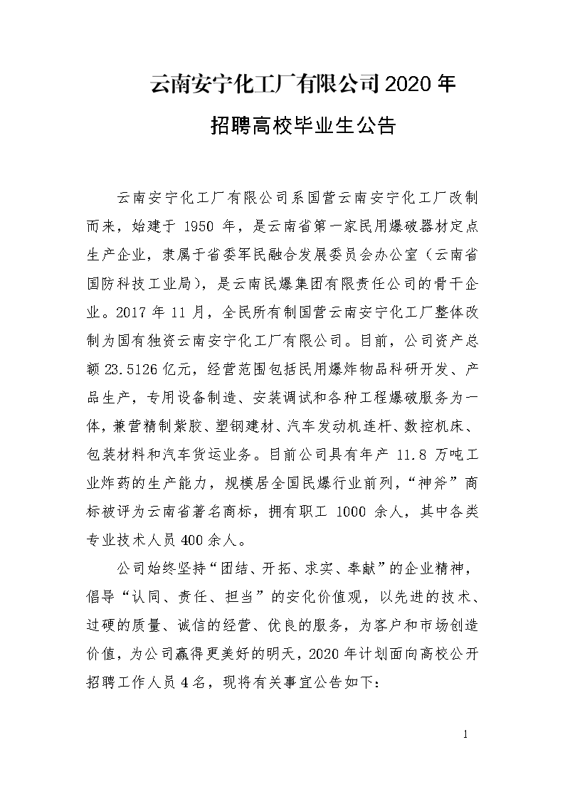 云南安寧化工廠(chǎng)有限公司2020年招聘高校畢業(yè)生公告